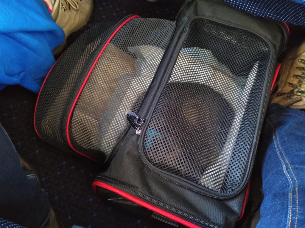 extendable transport box (see my blog on traveling with pets) on the floor and as soon as the security belt was off, we opened the extension net of her box, thus doubling the size of her space. We had booked two chairs with extra leg space and it paid off. We could stretch our legs comfortably and have her box with the extension open