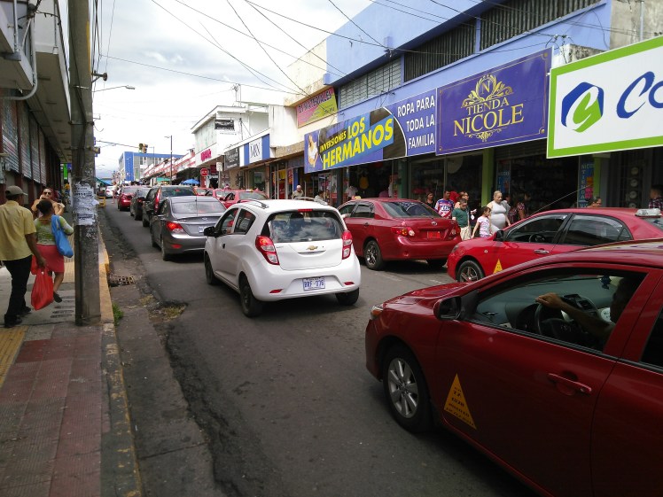 Alajuela is niet heel bijzonder. Het is een dambord van straten – net als in veel Amerikaanse steden – met lage huizen van steen en metaal aan de buitenkant. De goten zijn heel diep en groot (goed oppasen met oversteken) omdat het hier heel hard kan regenen in de regentijd. (Het is nu het droge seizoen dus we hebben nog maar één keer een regenbui gehad). Wat ook anders is dan in Nederland is dat de electriteits- en telefoonkabels in de lucht hangen. Dat ziet er heel rommelig uit. De mensen zijn hier niet heel arm en niet heel rijk, en de meesten die we op straat zien hebben overgewicht. We zien maar een paar bedelaars en iedereen rijdt rond in gewone auto’s. Ze kleden zich een beetje anders dan in Nederland, maar meestal is het gewoon in spijkerbroek en t-shirt.