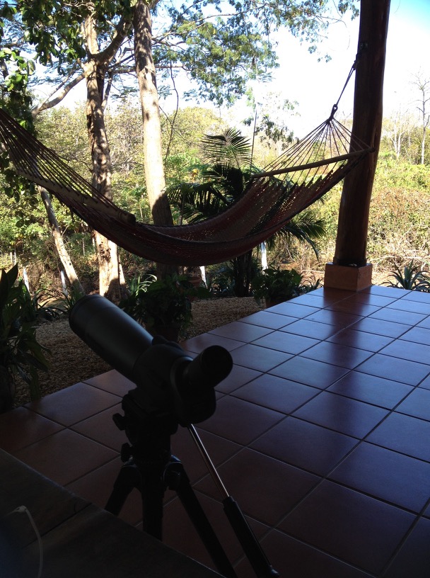 We doen niet veel meer dan vogels kijken, boeken lezen, bloggen, koffie drinken, eten, kletsen en slapen. Al naar gelang waar we zin in hebben. We staan om zes uur op, om acht uur liggen we in bed, en na de lunch doen we een dutje (‘siesta’). Zo kan ik nog wel een week doorbrengen. Misschien wel twee.