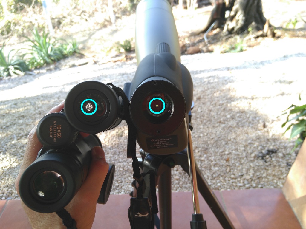 The pictures below give a rough impression of the magnification that the binos achieve.