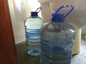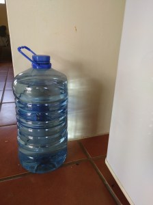 Our version of the problem was more or less like this. The first time it took us by surprise and we did not have a lot of bottled water in the house, except for some liters of cold water in the fridge. So the drinking problem was solved. The dishes could wait, and we could do without a shower. Of course, I was just about to take a shower when the water stopped. One can still wash oneself with only a bit of water, fortunately. That day was the day we went to the veterinarian nearby to get Matilda checked and to do some shopping so we could stock up on bottled water. Then one needs water to clean food but this also does not require a lot.