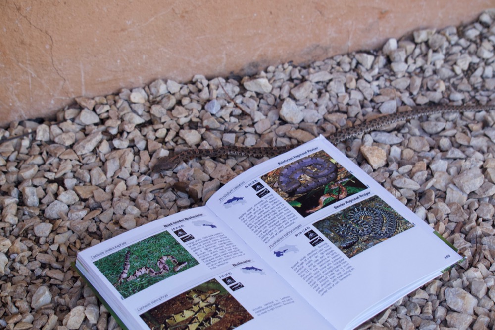 When the gardener came, I told him how Manchita had brought a snail eating snake. He took a milisecond-long look at the snake and told me in a very calm and polite way that that snake was actually a viper (specifically a Slender Hognosed Pitviper) and that it was VERY poisonous.