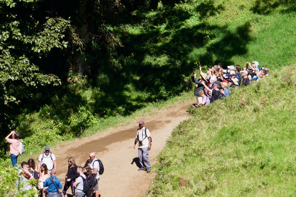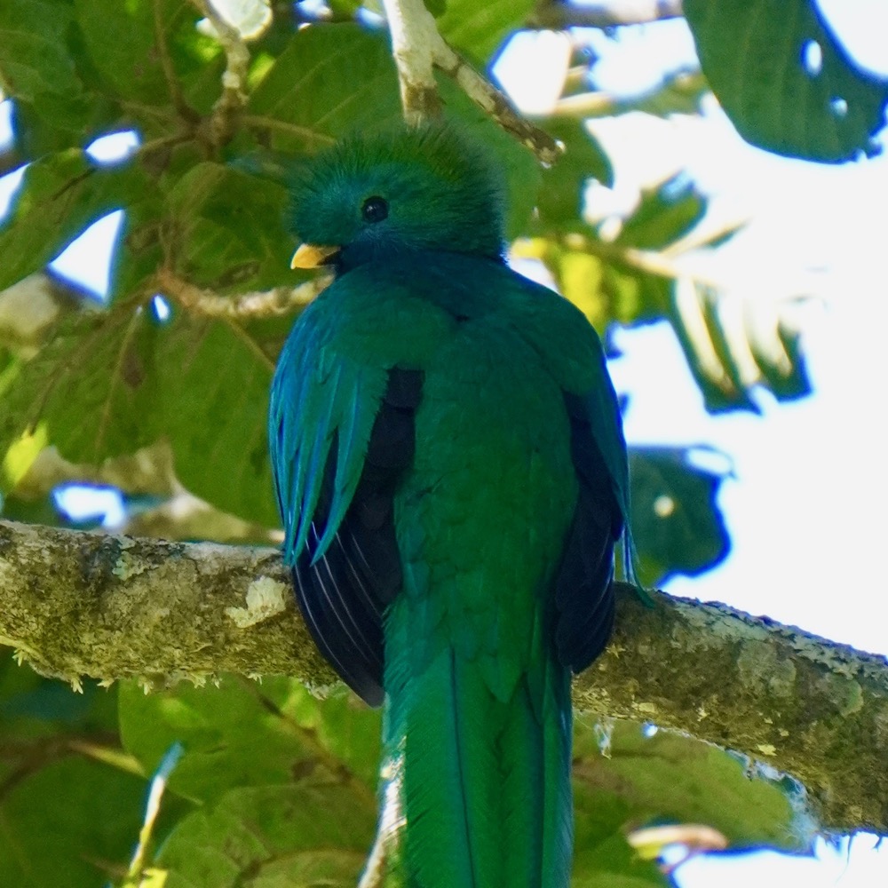 In what took us to set the telescope and camera, we were surrounded by about 50 tourists who had come running knowing that a quetzal had been sighted. Apparently, it does not happen every day nor does it happen that close. And the truth is, I understand the fuzz. It is a spectacular bird! And as a friend of ours says, it is not shy at all. He was there, without moving, during the whole day, I suppose, observing the hordes of tourists who came to see him.