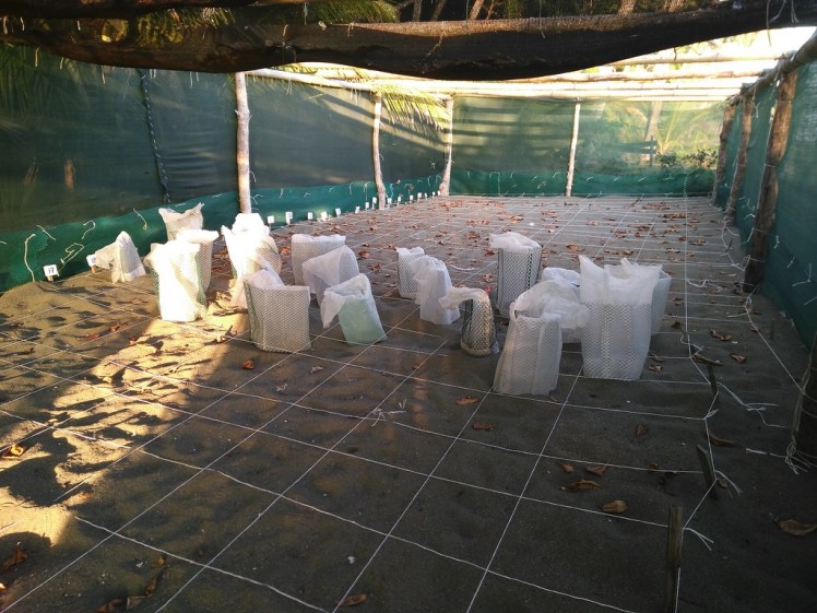 H. die me rondleidde heeft me van alles verteld over hoe ze de nesten en de schildpadden meten, en hoe ze soms nesten verplaatsen naar een hoger gelegen stuk strand of een speciale ‘broederij’: een afgescherm stukje strand met een soort tent van gaas. Er was één nest dat rond 7 maart uit zou moeten komen, maar waar nog geen spoor van te zien was, jammergenoeg. Wat het ‘wildlife’ betrof was het een beetje een teleurstelling, maar zo gaat het nu eenmaal met safaris. Soms heb je geluk en soms heb je pech. Ik kom vast nog weleens vaker. Bovendien heb ik veel geleerd over het werk dat H. en J. en anderen hier doen.