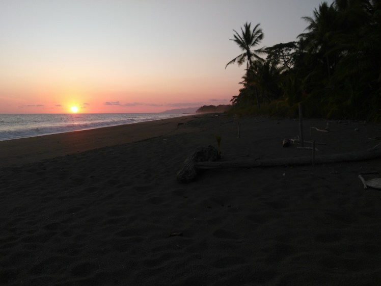 Cristina ging aan het eind van de middag weer terug, maar ik mocht een nachtje blijven om een paar schildpaddenpatrouilles mee te lopen. Een vlak voor zonsondergang en een rond zonsopkomst de volgende morgen. Ik heb jammergenoeg geen schilpad gezien. Het is nu niet het nestseizoen maar er waren wel een paar nesten op het strand waar we patrouille liepen. Dezelfde nacht trof een andere patrouille op een ander strand wel een paar schildpadden aan.