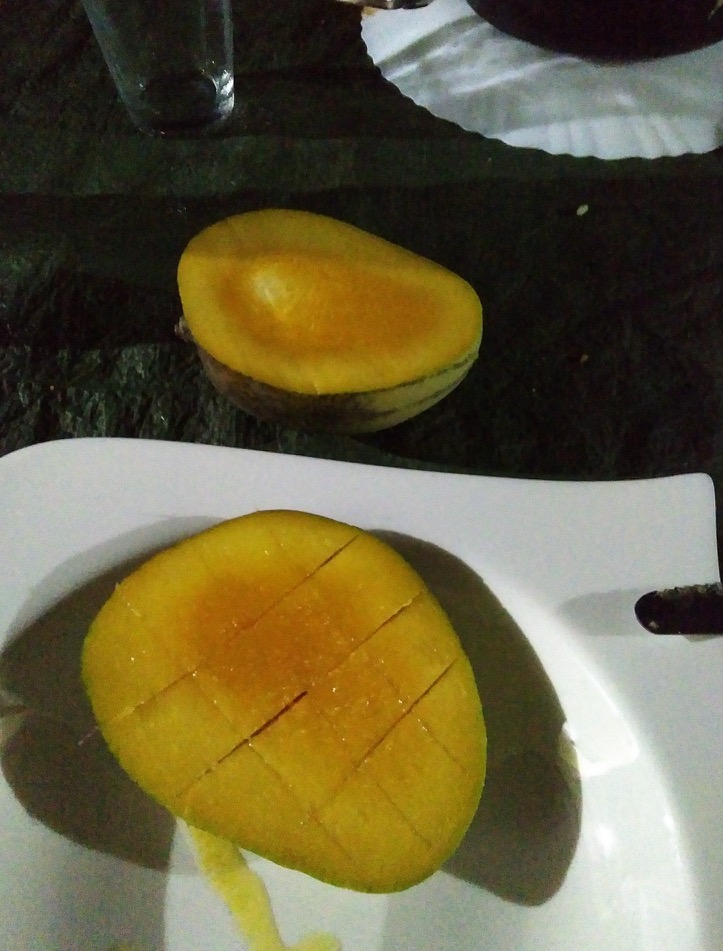 Oeps … voor ik het vergeet, gisteren viel de eerste mango uit de boom naast ons huis. Een heugelijk moment want er hangt er maar een handvol van in. Hij zag er niet rijp uit, maar was het wel degelijk!