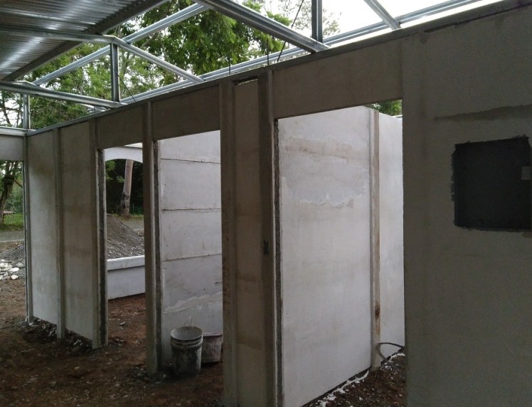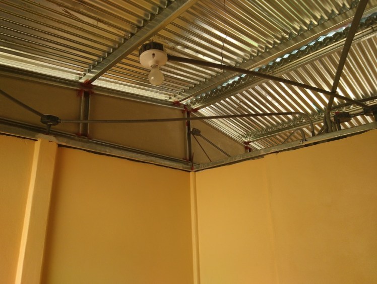 The roof consists of a galvanized steel frame and a metal plating, and in most cases (I guess) there is a septic tank since there are no sours in the country side. The electrical grid extends into virtual all roads that we have traveled so far and so does the water supply.