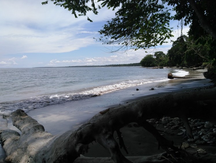 Cristina was jarig de afgelopen week en dat hebben we gevierd met een wandeling in het Nationale Wild Reservaat Manzanillo Gandoca. Een Nationaal Wild Reservaat (NWR) is net wat anders dan een Nationaal Park. Ik geloof dat een verschil is dat er geen mensen in een Nationaal Park kunnen wonen terwijl in een Nationaal Wild Reservaat er geen nieuwe gebouwen en nederzettingen mogen worden gebouwd. NWR Manzanillo Gandoca is een van de weinige plaatsen (als niet de enige) in Costa Rica waar zeekoeien voorkomen. Het heeft ook geweldige stranden, kleine rotseilandjes, mooie uitzichten en veel bos, zee en zoet water.