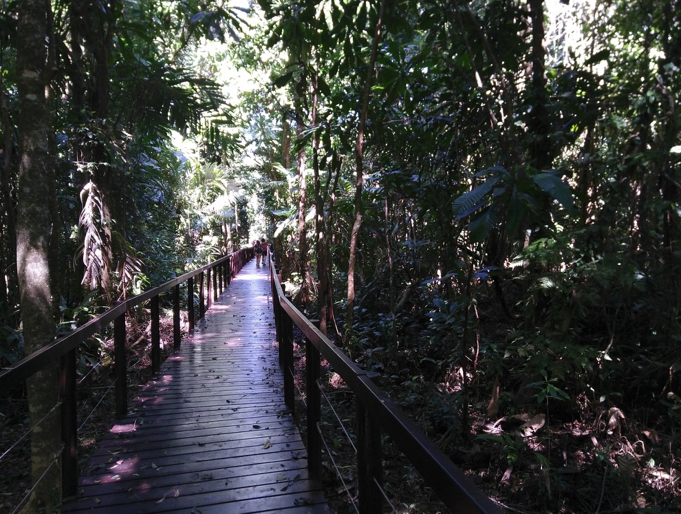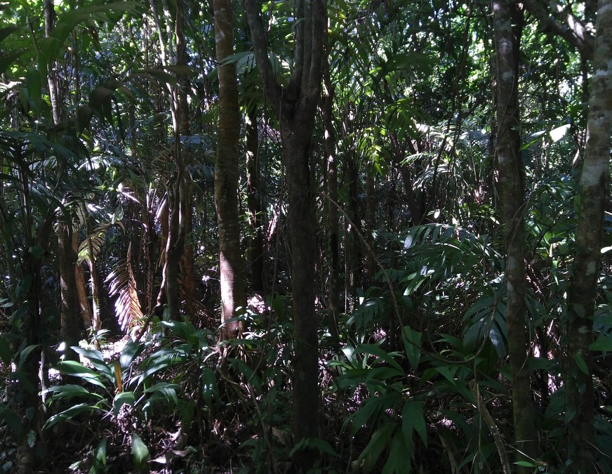 De volgende dag gingen we naar het Nationale Park Cahuita. Dat park heeft een ingang bij het strand, maar ik had geen zin in nog een slechte strand ervaring, dus we namen een andere ingang. Die van het bos. De vorige keer konden we daar niet in omdat er onderhoud aan het pad werd gedaan. Hoe dat uitpakte konden we nu goed zien. Er loopt een twee kilometer lang houten pad op palen door het bos. Op palen want het is er erg drassig. En het lag er piekfijn bij. Met een toiletgebouw aan het begin en toegankelijk voor rolstoelgebruikers. Het pad eindigt aan het strand bij een gebouw voor de parkwachters dat tevens dienst doet als herberg. Aan deze kant van het park was het strand zo goed als leeg. Voor de meeste Tico’s ligt het te ver van de parkeerplaats. Het uitzicht was adembenemend en goed voor een postkaart!