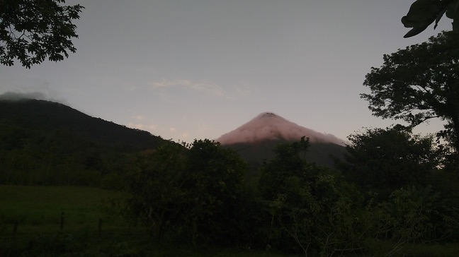 De afgelopen week was een werkweek met weinig bijzonders. Het weekend echter was een vierdaagse trip naar Arenal. Arenal is een gebied dat bekend staat om een vulkaan met dezelfde naam aan het eind van een langerekt meer met dezelfde naam. Er is uiteraard ook een dorp dat Arenal heet. De vulkaan staat te boek als actief. Dat wil zeggen dat er was een grote uitbarsting in 1968 met daarna periodes van lichte of lichtere activiteit. Tot 2010. Sindsdien rookt ie niet eens meer. Cristina en ik waren er eerder geweest, tijdens een vakantie in 2013 en we wilden de vulkaan en de omgeving graag nogeens bezoeken. Een andere reden was dat we onze ‘Marchamo’ sticker (bewijs dat we wegenbelasting hebben betaald) moesten ophalen in La Fortuna, een stadje aan de voet van de vulkaan. Tenslotte moesten we onze auto door de jaarlijkse keuring laten gaan en dat kon ook in La Fortuna.