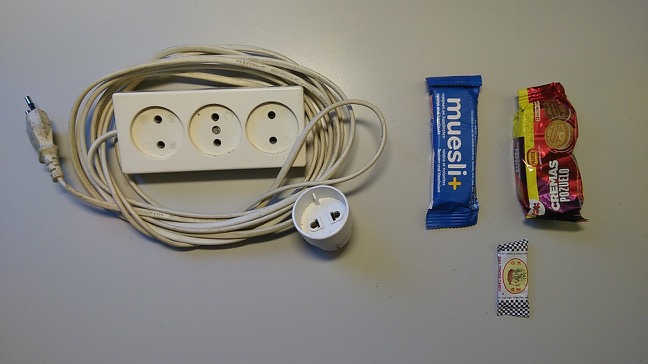 - The extension cable (with european plugs) and the adaptors