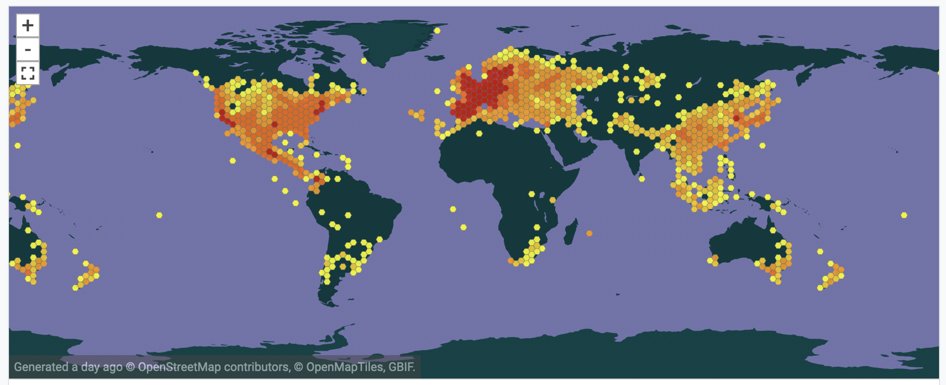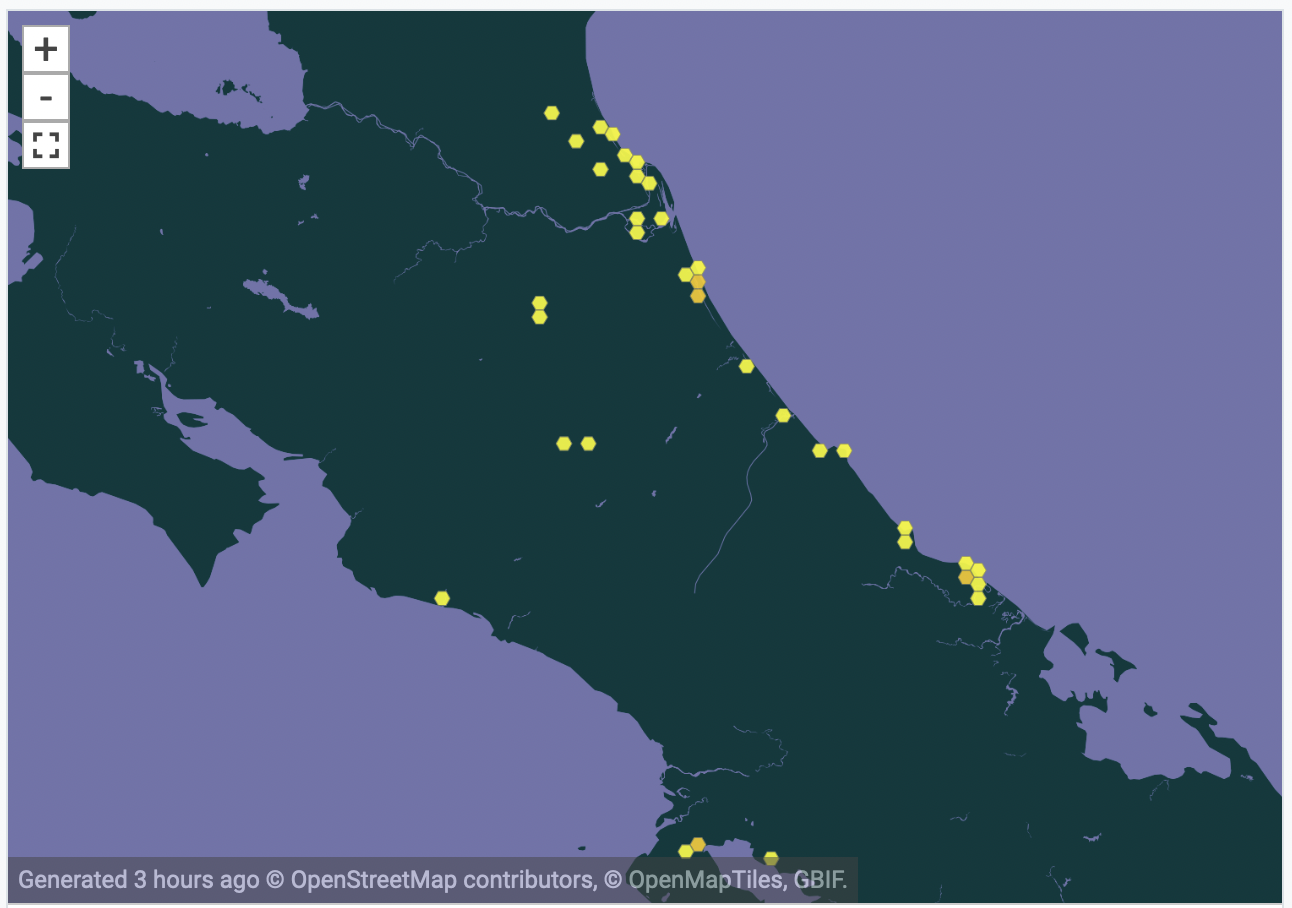 Wait, what!? Threatened species? How threatened? Well, the biodiversity database GBIF gives an impression. Below left, shows the map with all locations in the world as captured by GBIF. In the middle, a detailed view of Costa Rica. And for comparison, the picture on the right shows the occurrence of oak trees ( Quercus ) in the world.