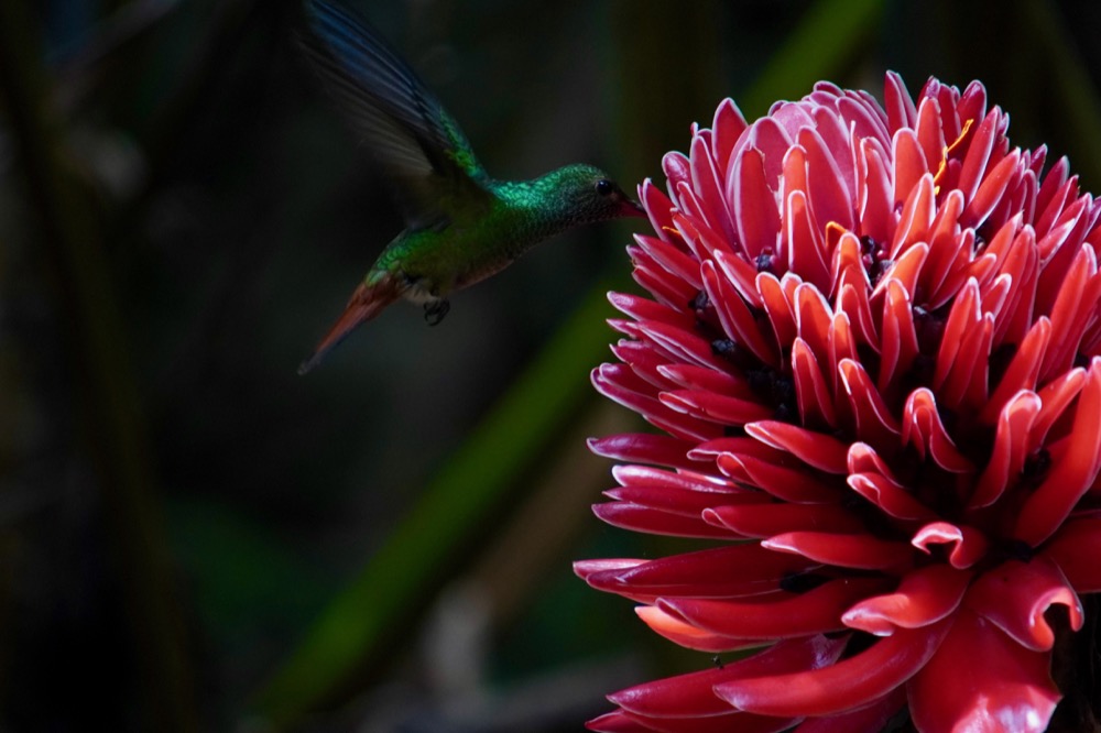 Ruffou shumming bird on bromelia:DSC04746